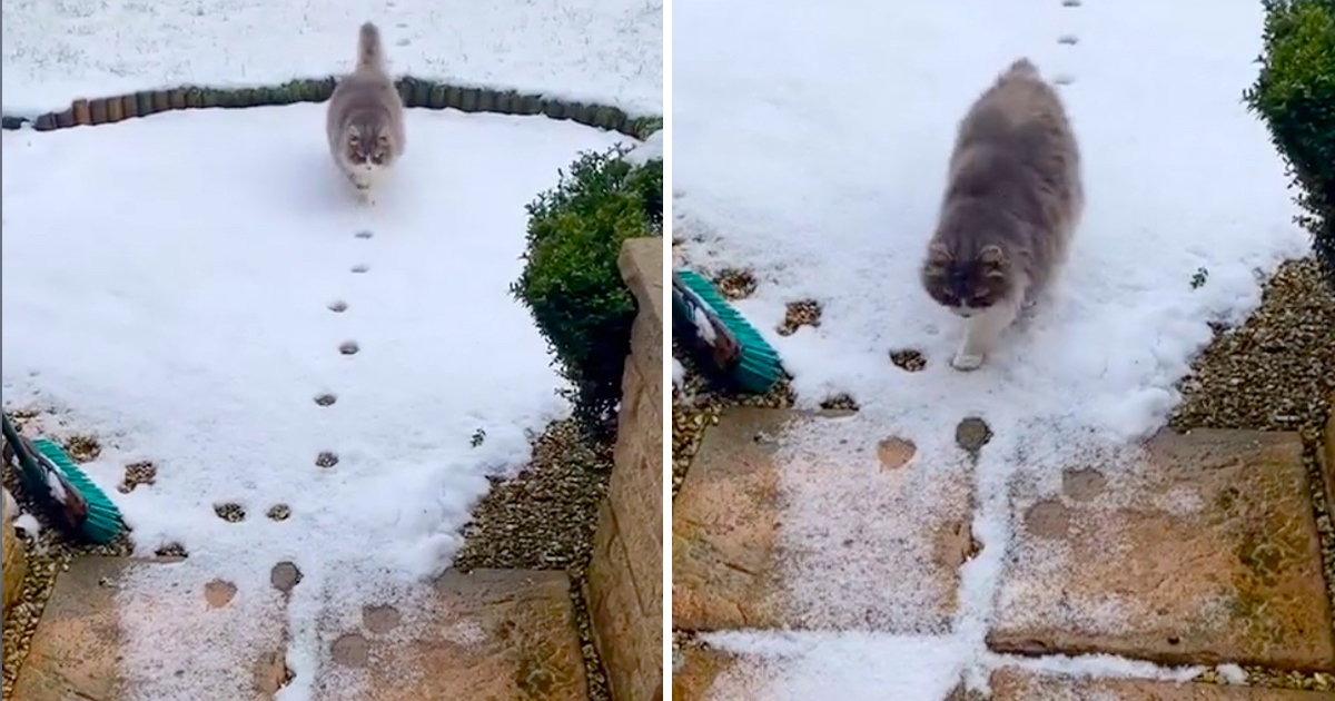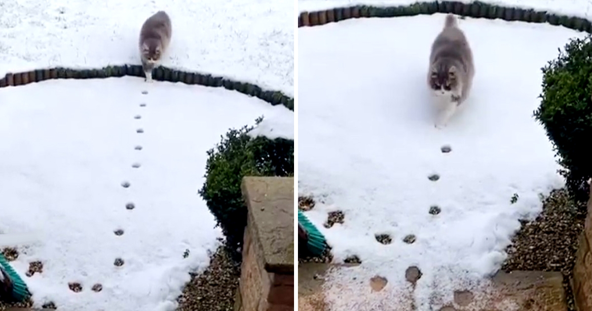 最強貓步! 萌貓貓出門玩雪「踩腳印回家」 「足跡一個也沒多」網友笑翻:根本強迫症~