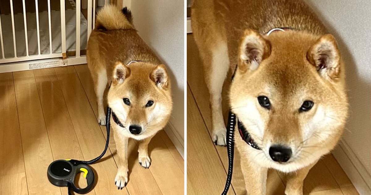 天兵爸出門遛狗忘記帶狗!柴柴站原地傻眼:說好的一起散步呢?