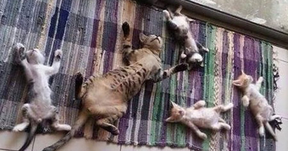 絕對是親生的! 貓咪一家人「連睡姿都遺傳」 1大4小「嫩肚被看光」:這樣睡才蘇胡啦~