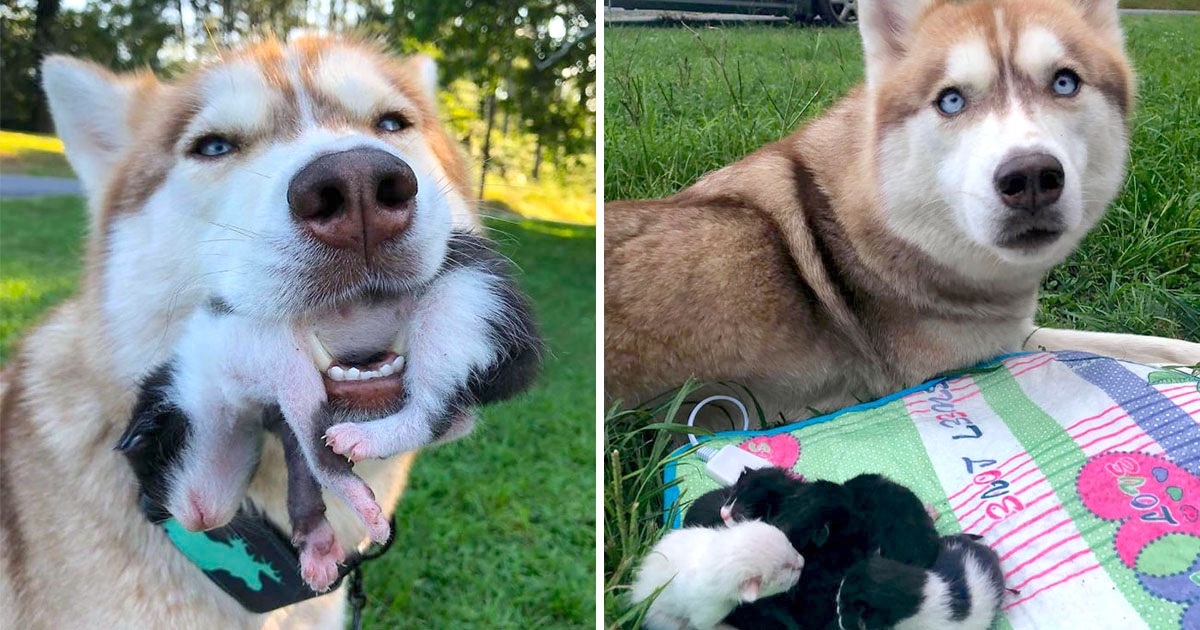 是英雄!哈士奇救出「7隻被密封奶貓」 回家當媽「放一排溫柔舔毛」:沒事了呦~