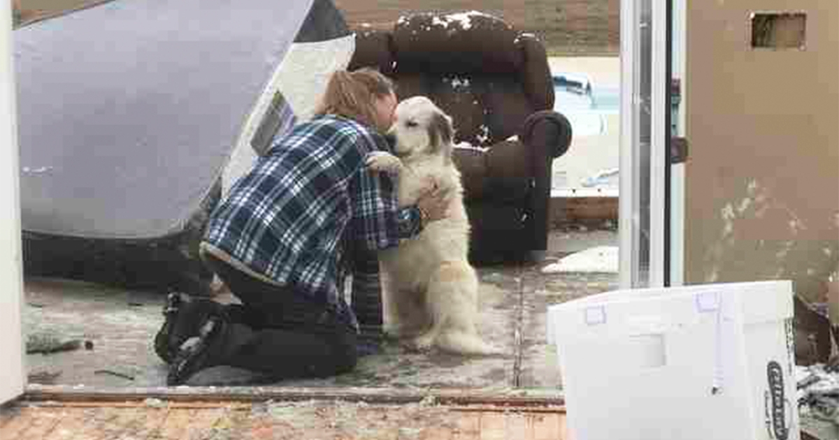龍捲風直接掀飛屋頂! 汪汪「忠心守原地」一見媽秒抱抱:沒事就好…