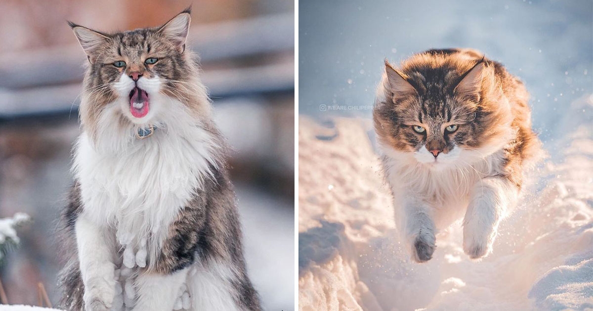 養到小獅子!挪威森林貓「蓬鬆鬃毛」超帥氣 在雪地玩耍化身神獸