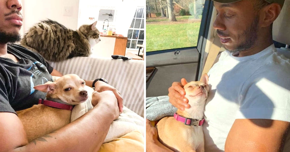 老公絕不領養小狗!吉娃娃一來秒「贏得男人心」 躺懷裡冷看:現在誰才是正宮?