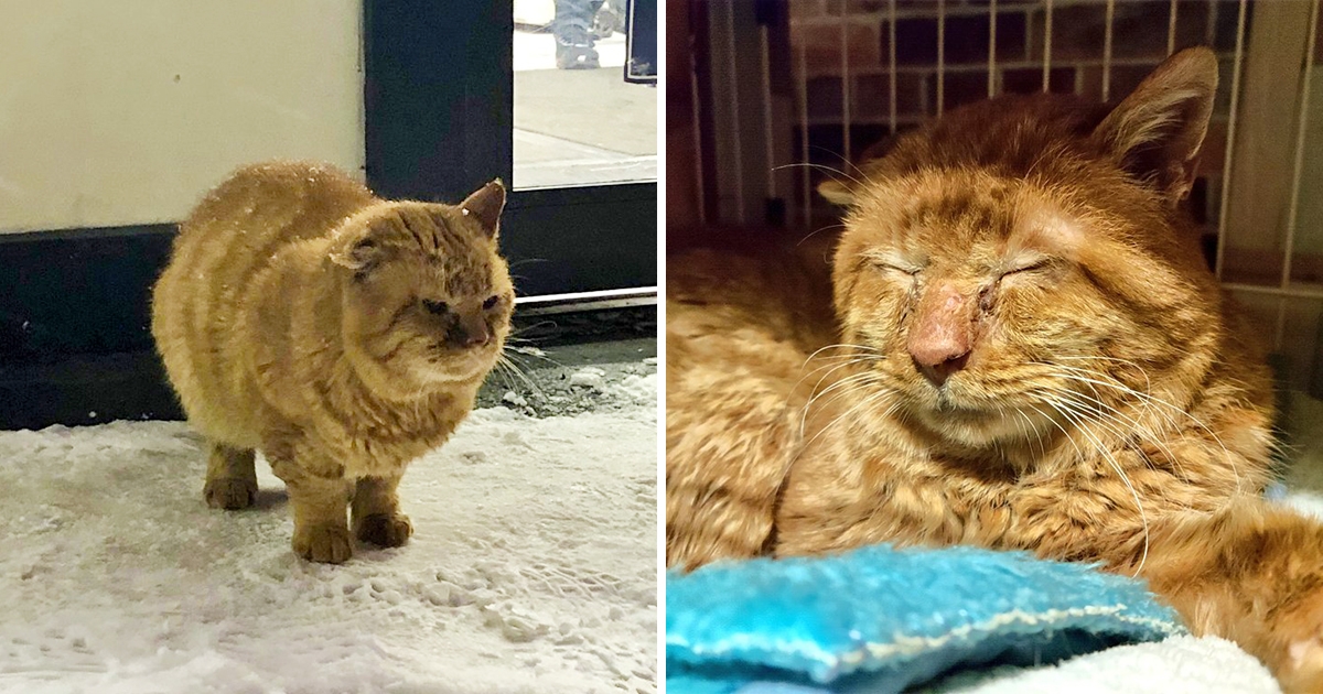 外面好冷…超商外浪橘「雪地中瑟瑟發抖」 牠又冷又餓「見人就喵」:可以帶我回家嗎?