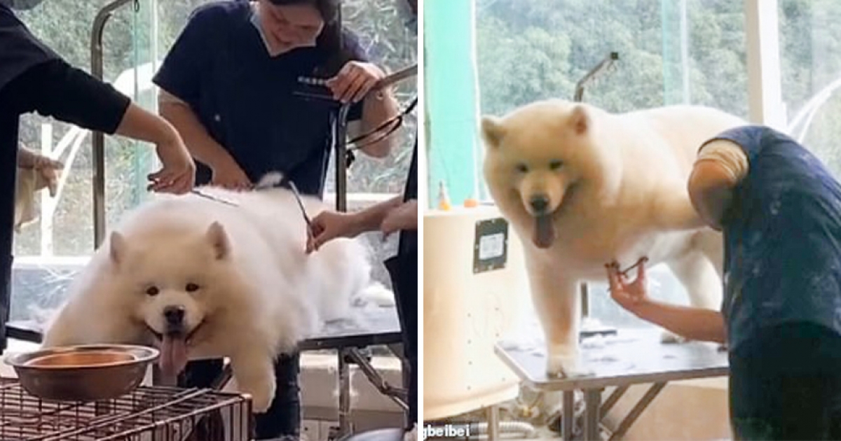 嘎逃摸囉~ 呆萌薩摩耶剪毛「秒變北極熊」 清爽造型+最溫暖燦笑:我很帥吧?