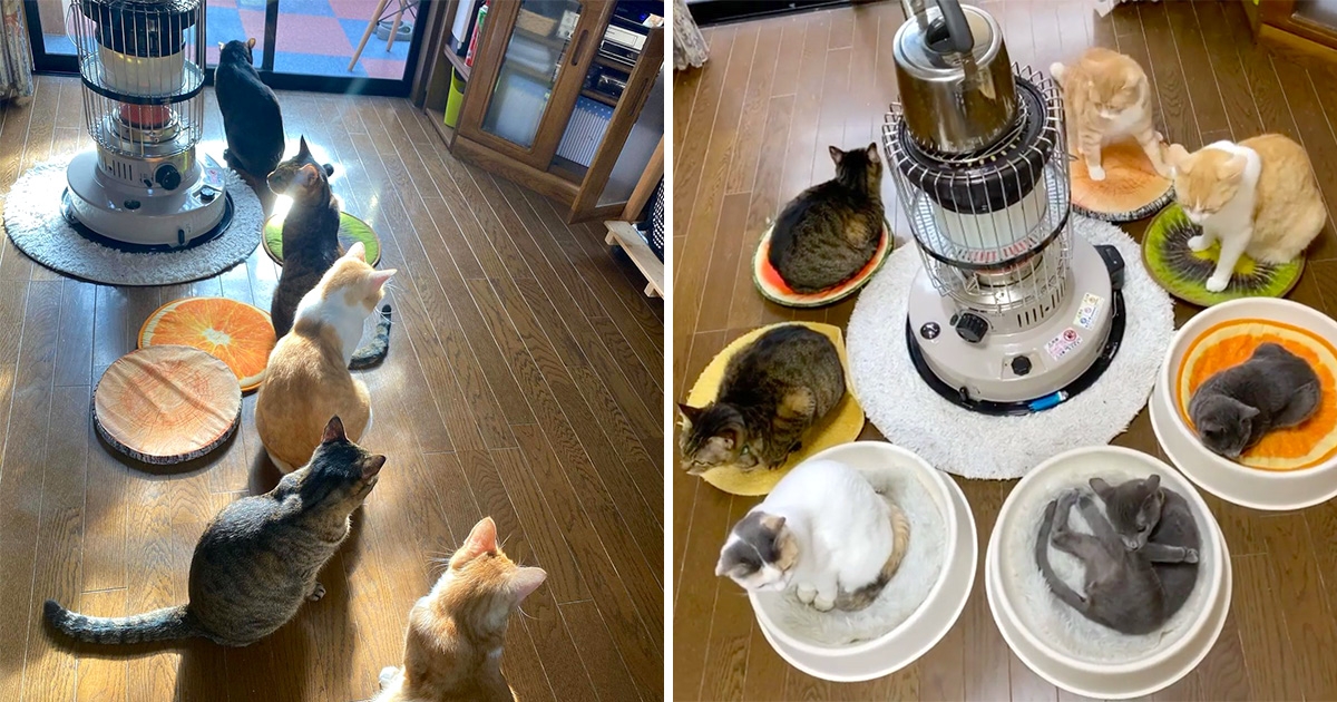 神秘儀式即將開始?8隻貓咪暖爐前排隊卡位 圍爐坐網笑翻:「太陽教信徒」