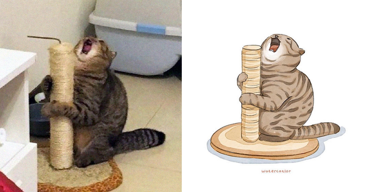 天公伯啊救人啊~ 30張「動作怪到引人發笑」的網紅貓咪插畫