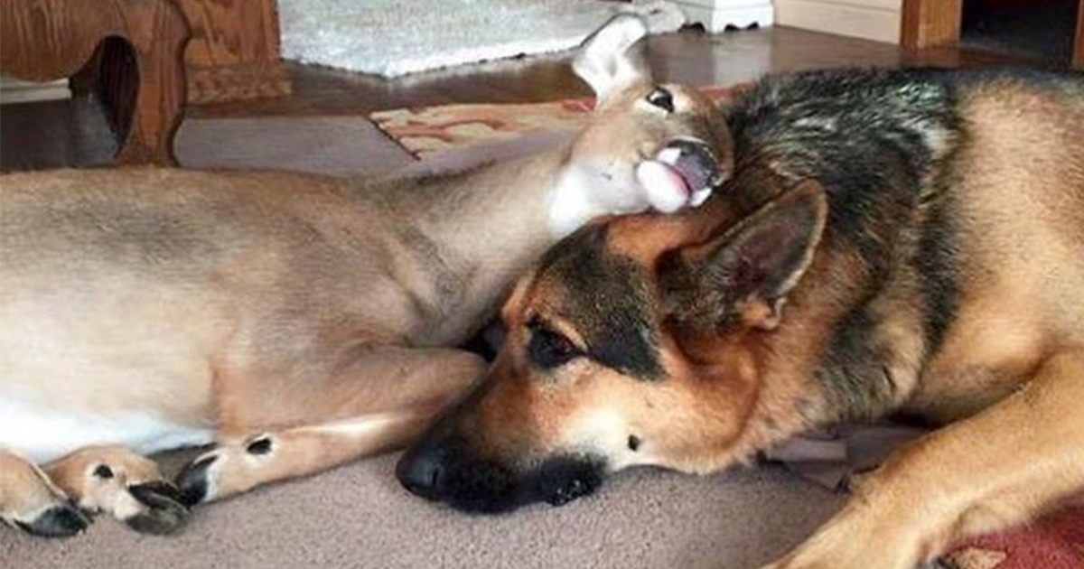 德牧自己認養孤兒小鹿! 「教牠走路」一手養大…小鹿猛蹭:最愛泥❤️