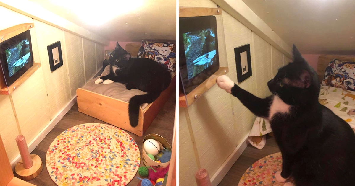 怕愛貓無聊!貓奴爆改樓梯間成「溫馨小臥室」 還安裝電視:牠超喜歡♡