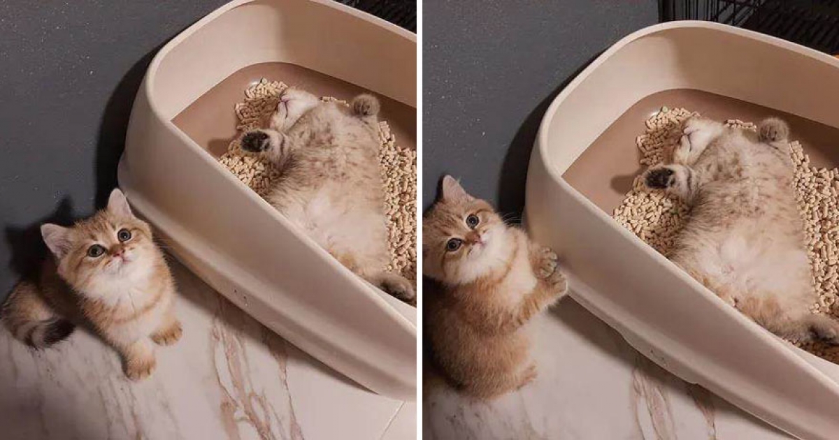 小奶喵把「貓砂盆」當新床爽睡! 其他貓想上廁所無奈:主人泥看牠啦QQ