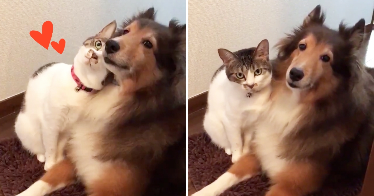 貓貓「甜蹭狗男友」撒嬌秀恩愛 轉頭見主人眼神秒犀利:看屁啊!