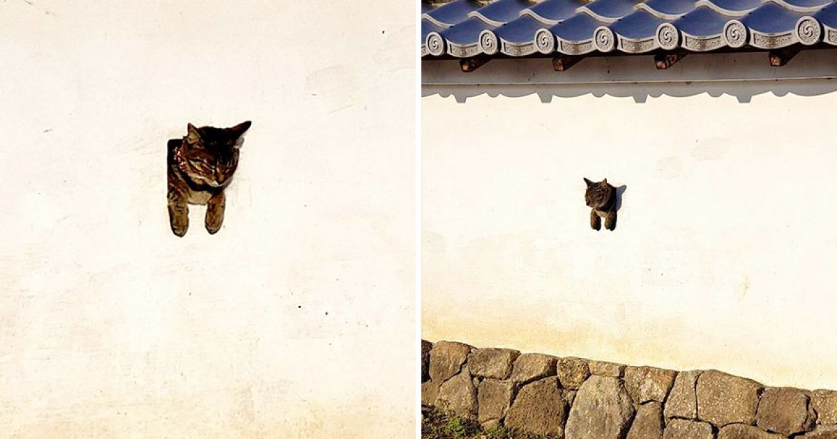 日本古城「牆壁上的洞長出貓」 遊客笑到拍不停:最萌奇觀~