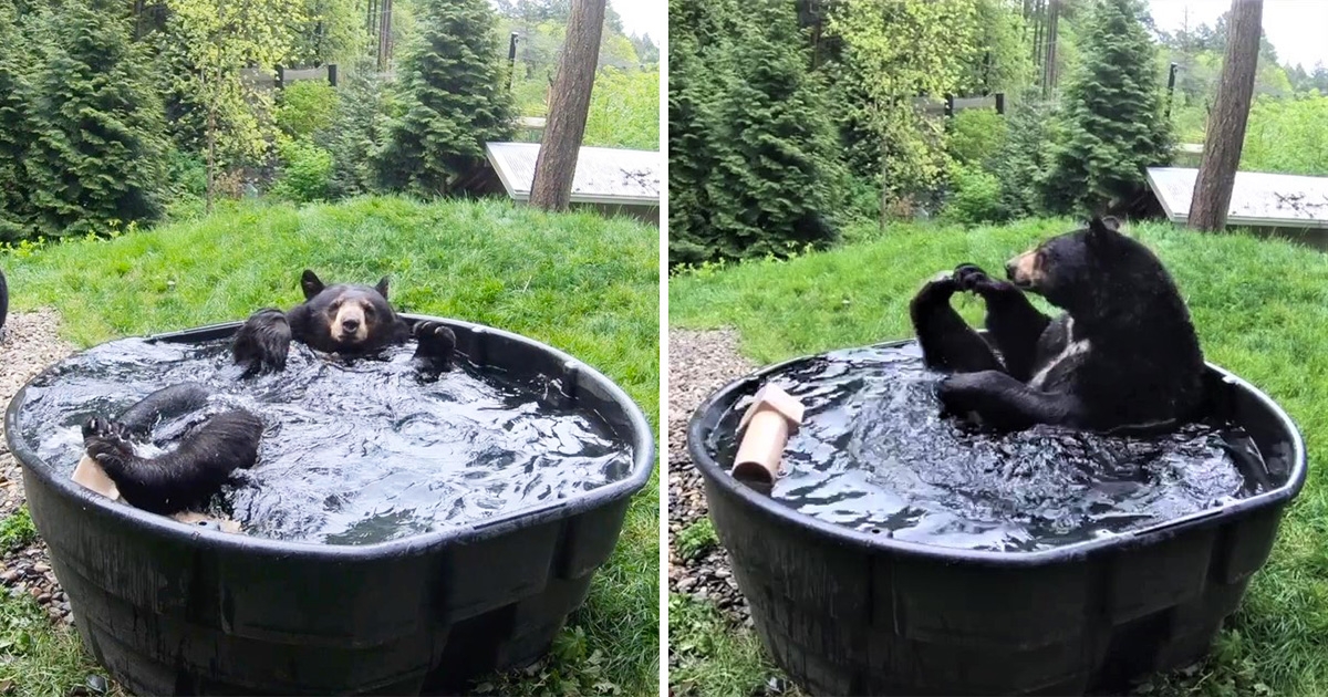 可愛黑熊「愛上泡澡」超愜意 在澡盆中手舞足蹈:夏天泡澡最爽啦~