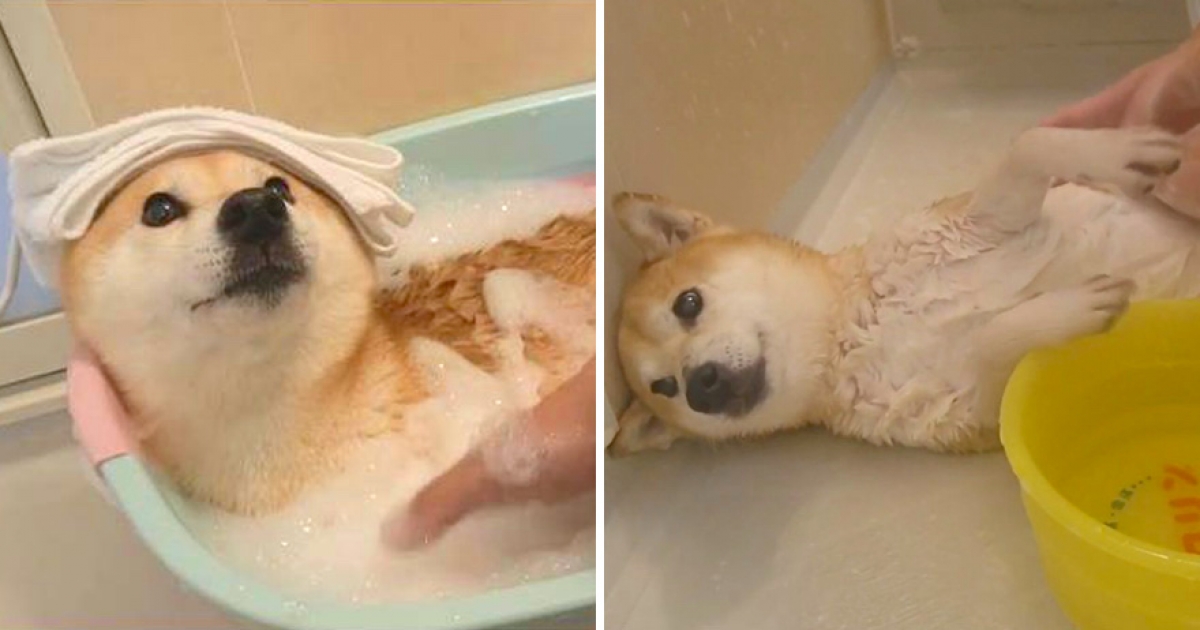 這是什麼天使柴!洗澡澡「任揉搓」還不忘賣萌 網融化:看牠洗澡是種享受!