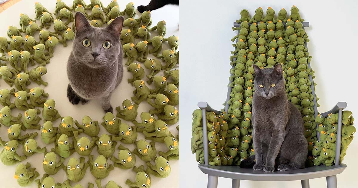 喵皇登基啦~主人進貢上百「IKEA青蛙奴僕」 牠一臉驕傲:都是朕的天下
