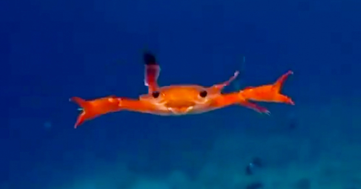 看過螃蟹游泳嗎?潛水哥捕捉罕見畫面 「使勁蹬腿」迷翻網:好可愛❤