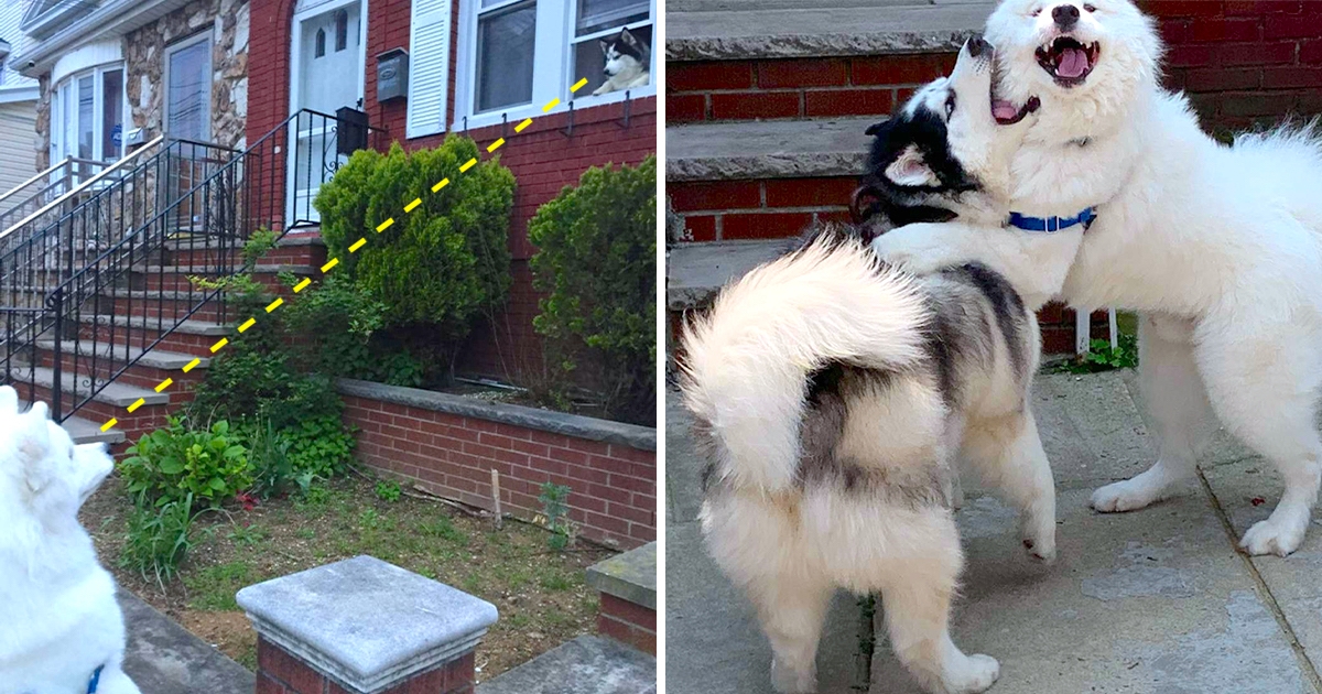 好狗緣!小薩堅持散步「一定要拜訪麻吉」 門外喊哈士奇:出來抱抱喔❤️