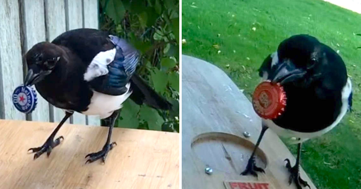 也太天才!男子訓練「喜鵲幫忙撿垃圾」 每天蹦蹦跳報到:來領零食囉~