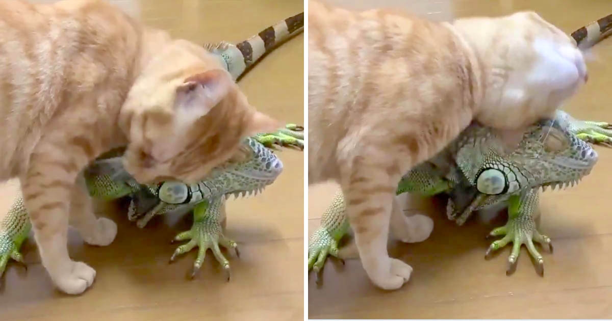 純天然毛梳!橘貓「狂蹭刺刺鬣蜥」 整隻停不下來:太爽啦~