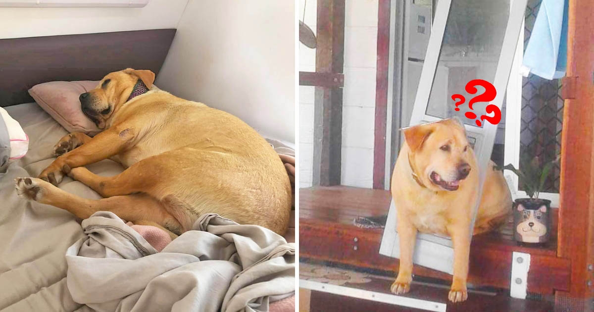 我就胖!幸福肥阿汪過狗門「竟整扇拔起」 表情超困惑:我不是出門了嗎?