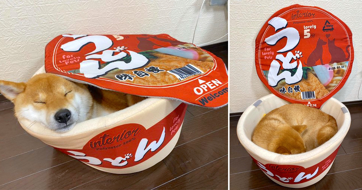 柴柴烏龍杯麵來一碗! 飼主購入「泡麵狗窩」汪汪睡進去秒變配料:好可口~