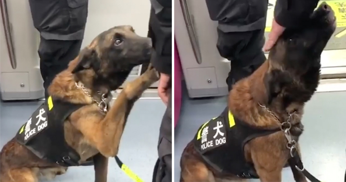 警犬也是汪! 牠搭捷運「執勤中狂撒嬌」 討摸摸「一下還不夠」:不要停~