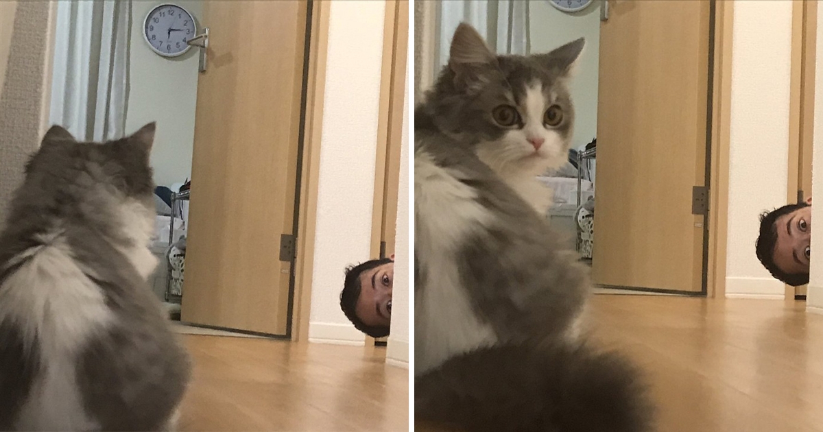 很煩餒~ 美喵被「跟蹤狂尾隨」 牠一臉無奈「回頭看媽」:你管一下把拔啦!