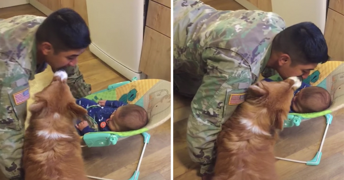短腿都愛吃醋! 爸爸親北鼻「柯基跑來湊熱鬧」 牠森七七「卡位爭寵」:先親人家一下~