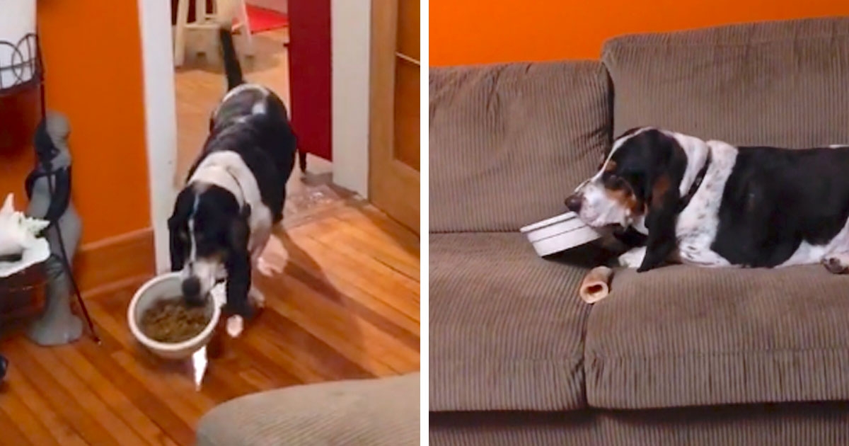 有夠會享受!阿汪晚餐「竟然外帶吃」 「叼碗躺沙發」網羨:耍廢的生活~