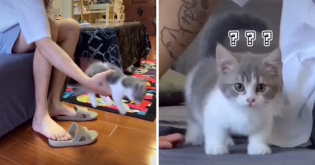 預備備~跳! 奶貓跳沙發「主人出手撈回」 牠跳到「懷疑貓生」一臉茫然:怎麼跳不出去?