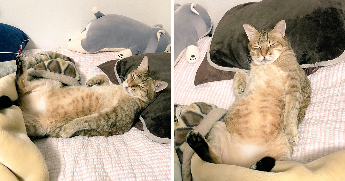 下班驚見虎斑喵「100%人類睡姿」 牠「霸佔奴才床位」睏超爽:這枕頭真蘇胡~