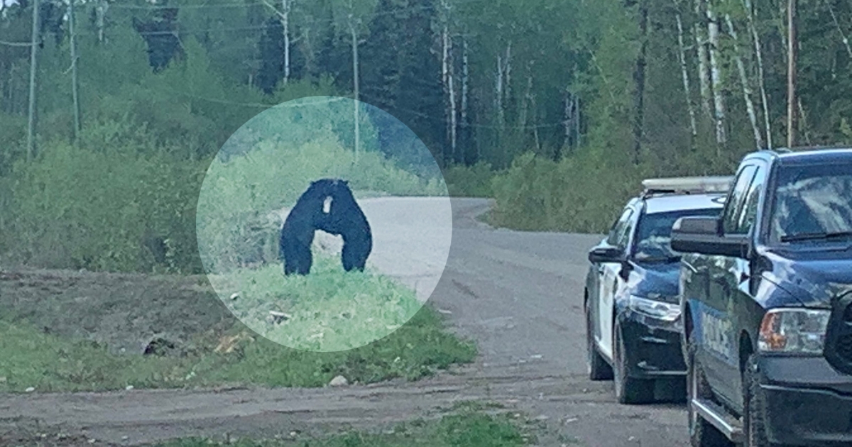 公然放閃! 2黑熊親密「路邊擁抱+手牽手散步」 加拿大暖警「開車遠遠護駕」:別吵到小情侶