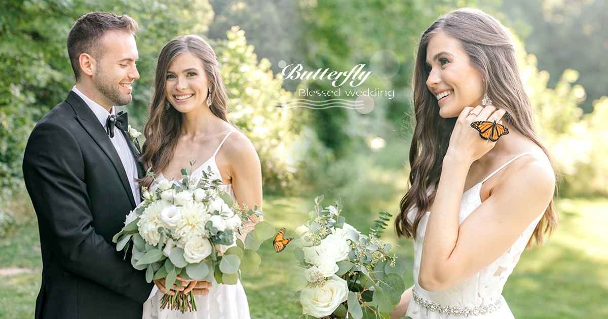 大自然也來祝福! 新人拍婚紗照「蝴蝶湊熱鬧」 圍繞捧花翩翩起舞:根本童話場景