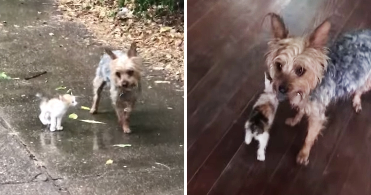 我家有很多好吃的! 約克夏散步遇小浪喵「一路拐回家」 媽好氣又好笑:你要自己照顧嗎?