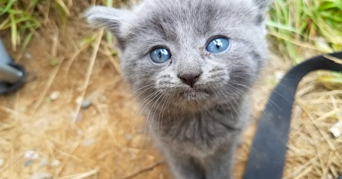 釣魚沒釣成卻釣到貓了! 絕美「小灰貓」爬包包甜叫:人類你要帶我回家~