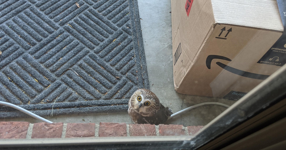 霍格華茲來的?「迷你貓頭鷹」門外送包裹 表情好無辜:您的快遞到啦,請簽收~