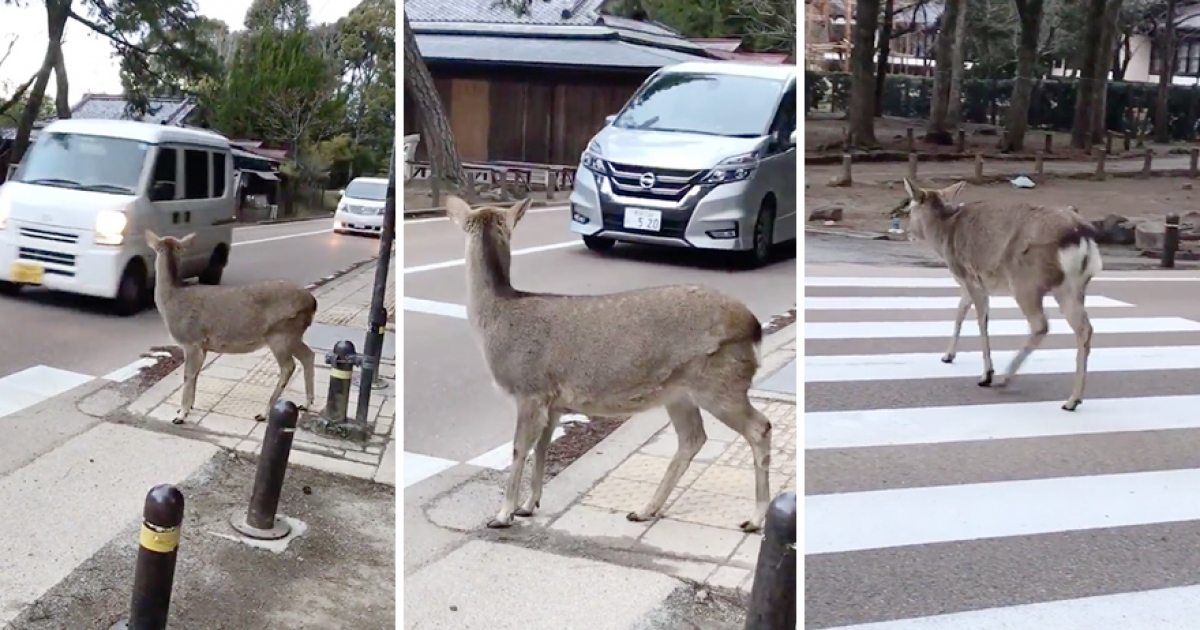 懂得過馬路~奈良小鹿看到車停下就點頭致謝 網笑:比人還守交通規則