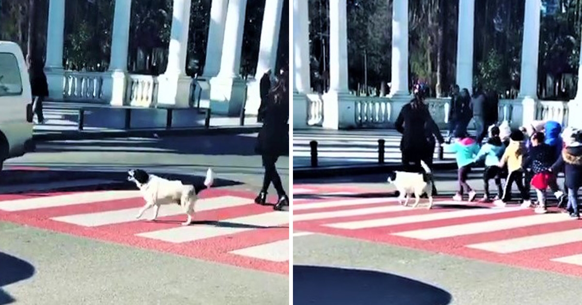 借過借過~貼心浪當「導護汪」指揮交通 還會提醒來車:要禮讓小朋友!