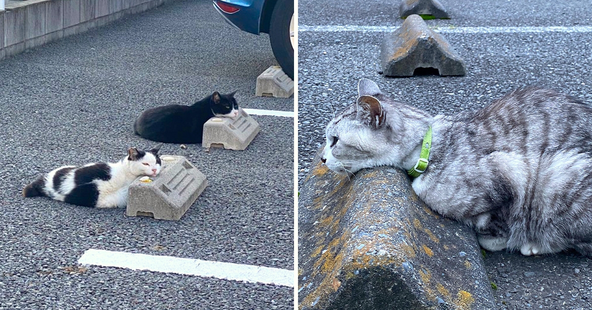 拿來饋頭!擋板被貓貓「一個個當枕頭」 停車網友笑:那不是給你們用的啦~