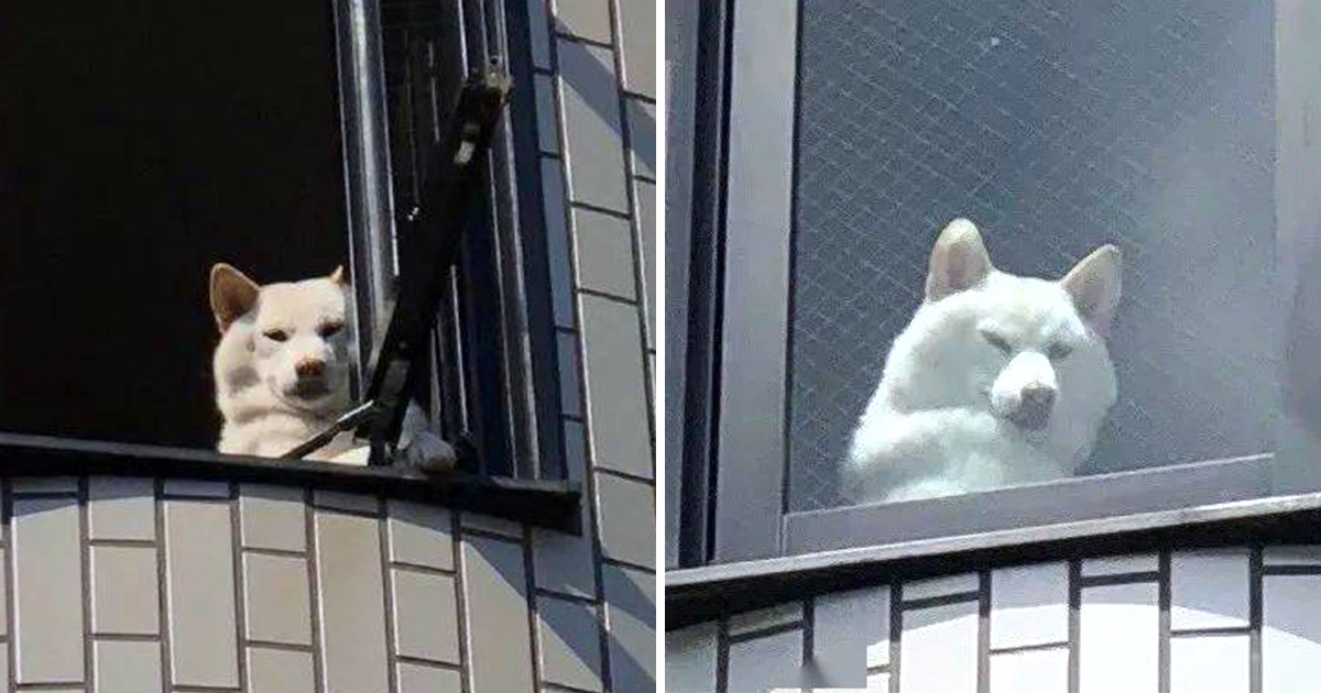 你還知道回來啊!回家抬頭見「強烈視線」 白柴「秀肌肉」主人無語:底下是拳頭嗎?