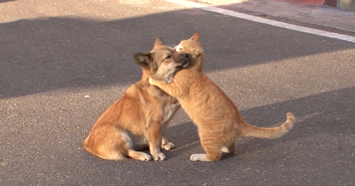 我們都沒家!遭棄小黃狗遇上「流浪橘貓」 牠暖心獻抱抱:你還有我啊
