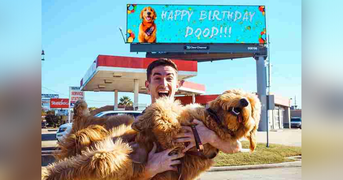 我家狗狗1歲了!男子「租整面看板」昭告天下 超寵慶生:反正我也沒女友