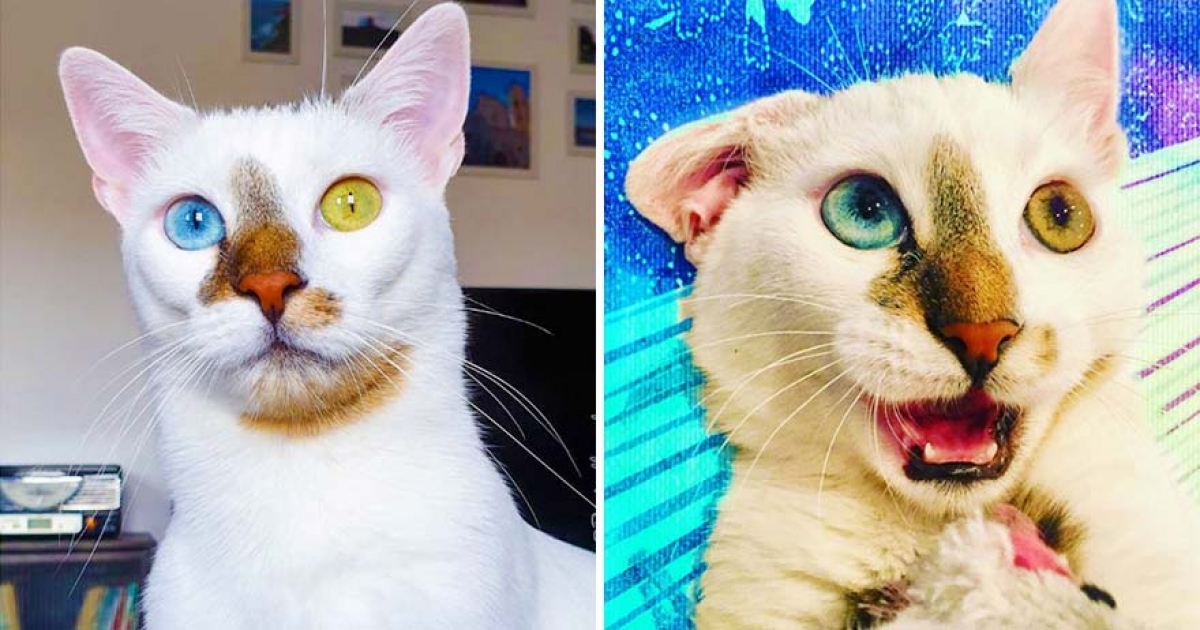 異色瞳白貓「連花紋也很吸睛」 自帶「表情包」超會賣萌討人歡心