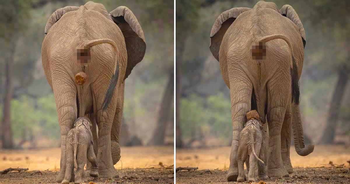 攝影師拍到最罕見一幕 小象緊跟媽…突然「天降大禮」掉頭上