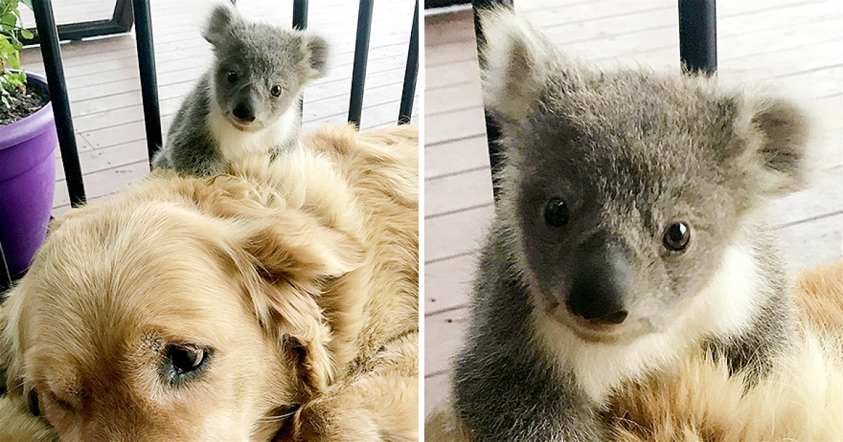 無尾熊寶寶求救!低溫夜抱緊黃金獵犬取暖 狗狗表情讓網友笑:辛苦你了