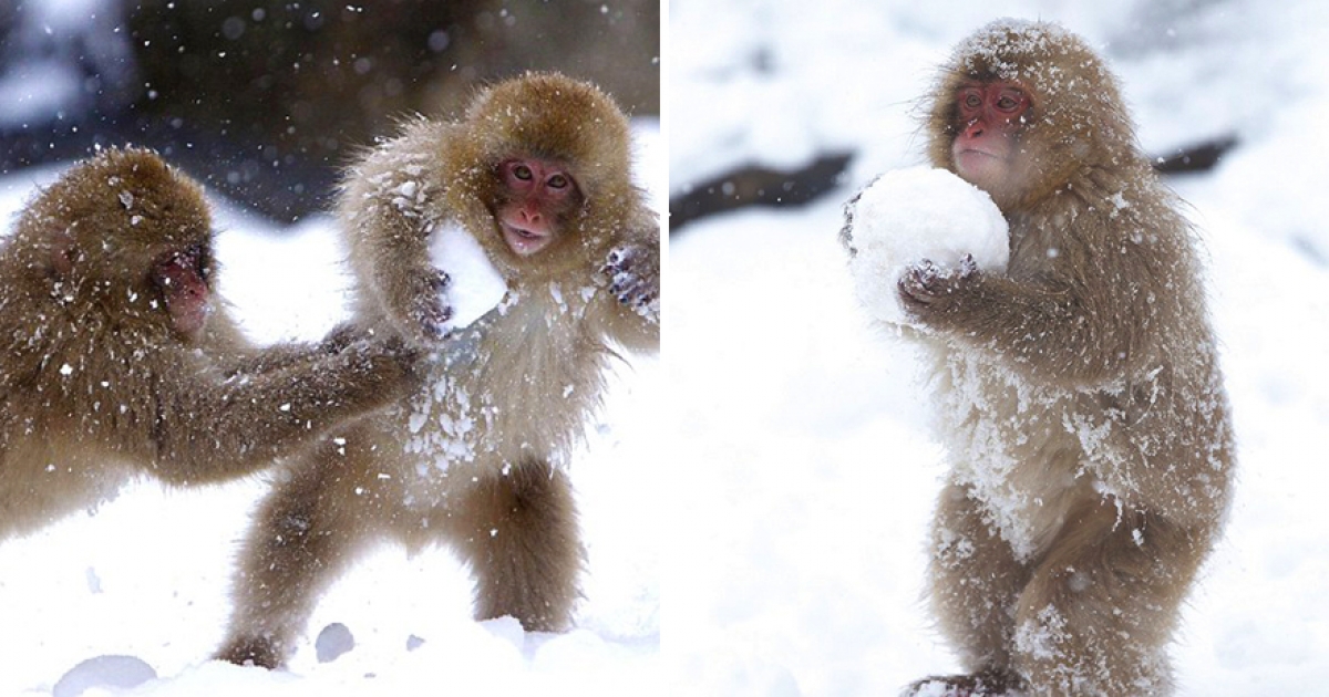 小猴子「搓雪球」技巧比人類強好多 雪地裡玩到停不下來萌入人心