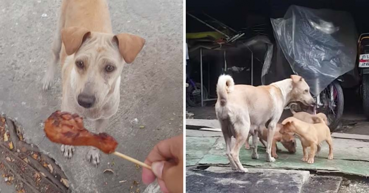 好心人給肉肉「浪浪卻叼著跑掉」 跟著牠走才看到:原來要留給狗寶寶吃