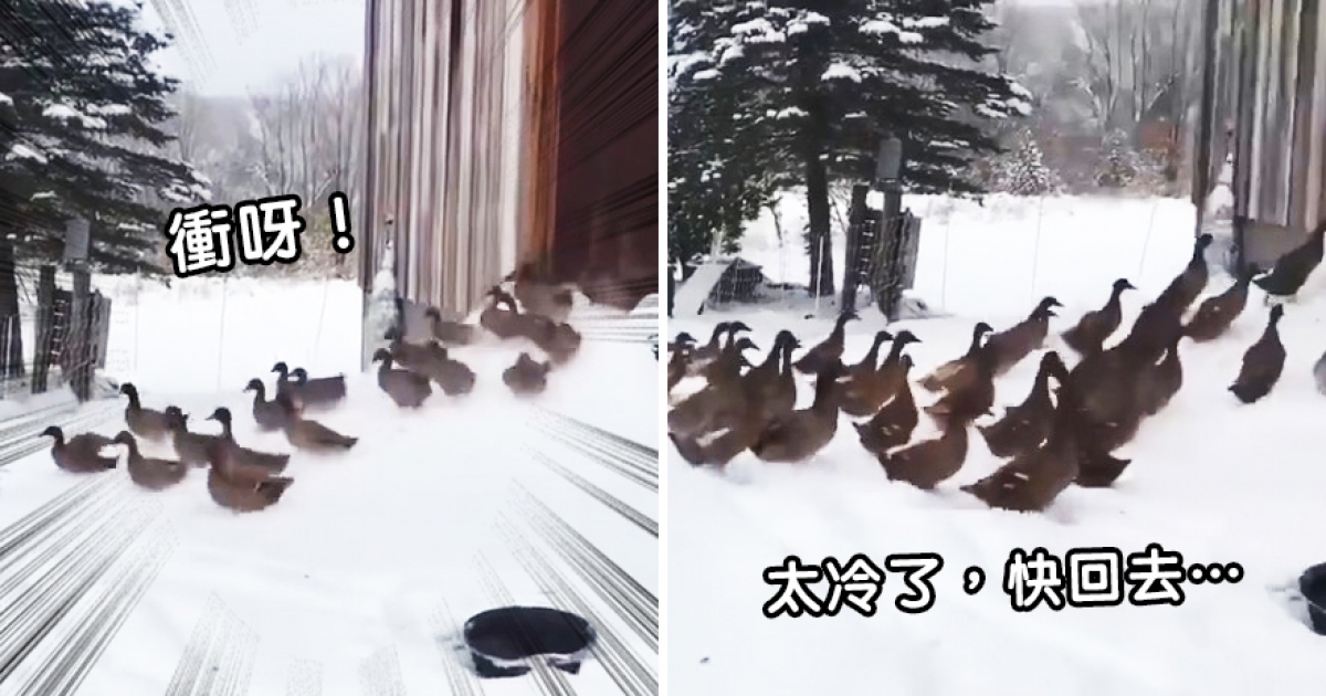 開穀倉大門以為放風 鴨鴨興奮衝「發現不對勁」急巴庫:外面太冷了!