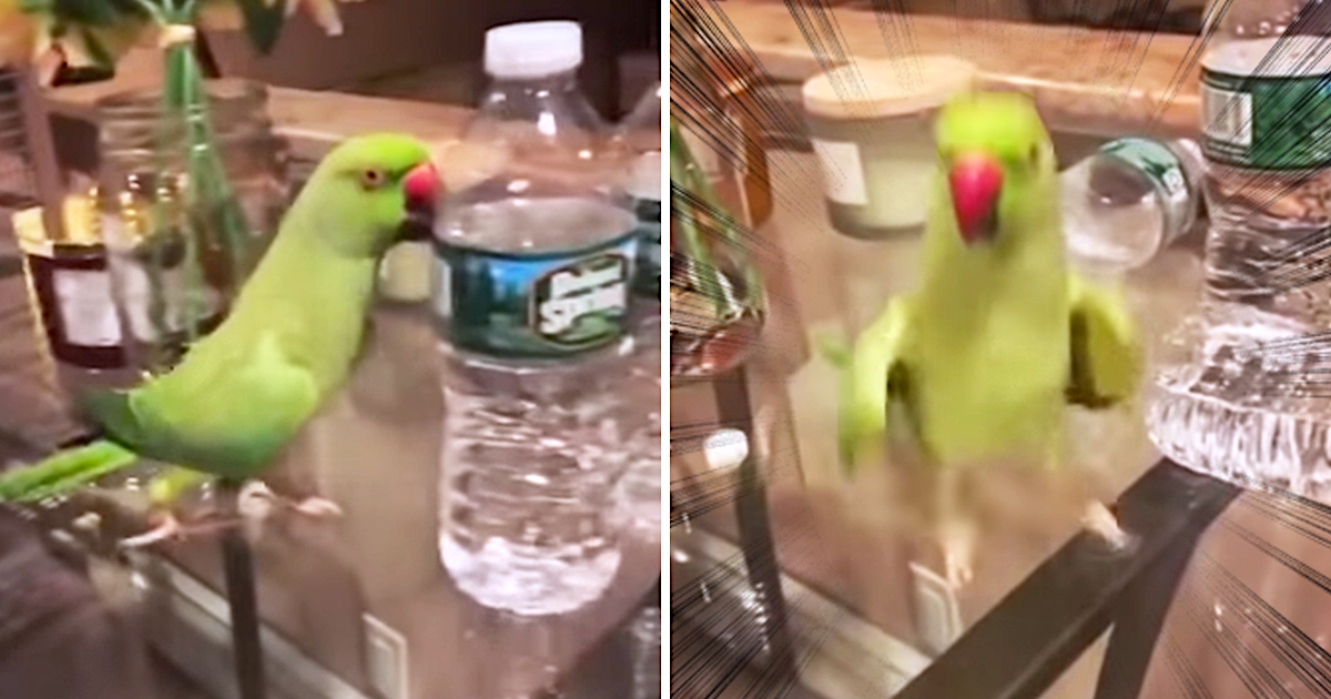 比喵皇還欠揍!屁孩鸚鵡推水瓶 得逞後跳舞開嘲諷:被我推倒惹~