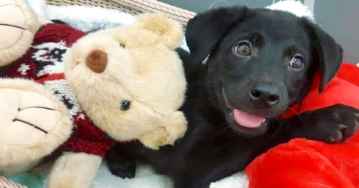跟媽媽走失好不安…奶氣小黑汪「收到熊娃娃」 撒嬌依偎甜睡:是媽媽的感覺